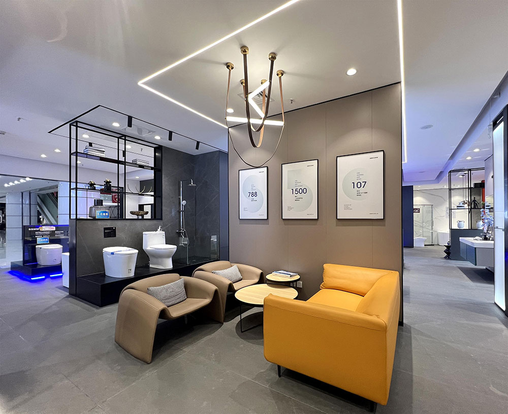 店面整体时尚简约的格调,让人眼前一亮。通过现代高级配色,与臻选的卫浴产品碰撞出与众不同的空间气质,轻奢雅致,简约个性,让每一个空间富有时尚感和温馨感,带来与众不同的视觉感官体验。