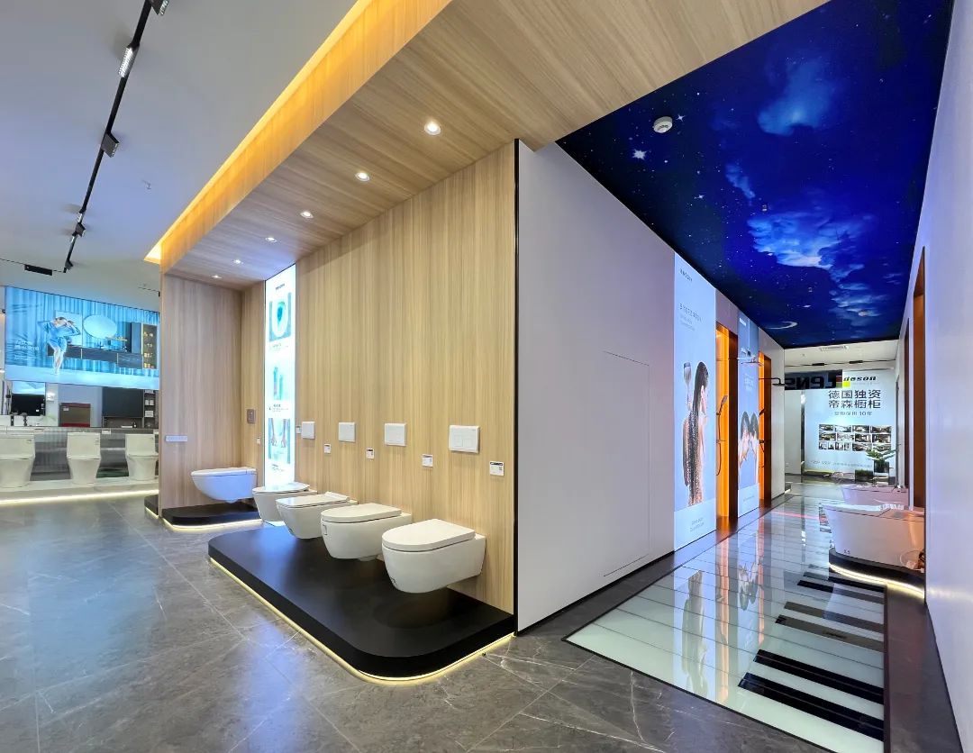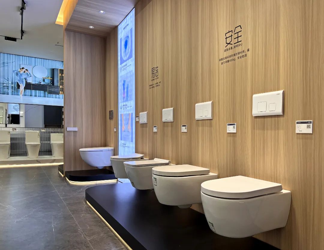 以消费者视角规划空间布局,动线合理。进入乐鱼体育店内,首先感受满载科技感的智能马桶,对于提升生活品质,改善卫浴体验,智能马桶一定是首选好物。