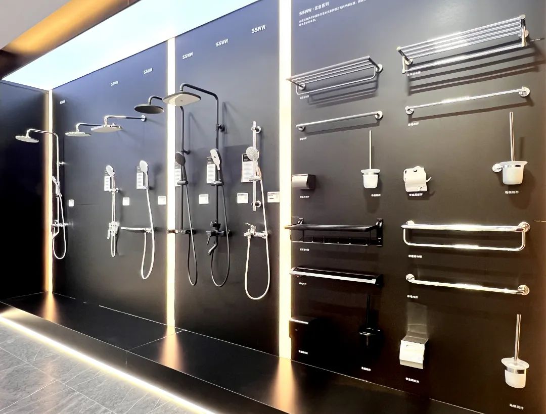 五金区、马桶区陈列规整而不局促,专业高端,每款产品,都有大牌风范。