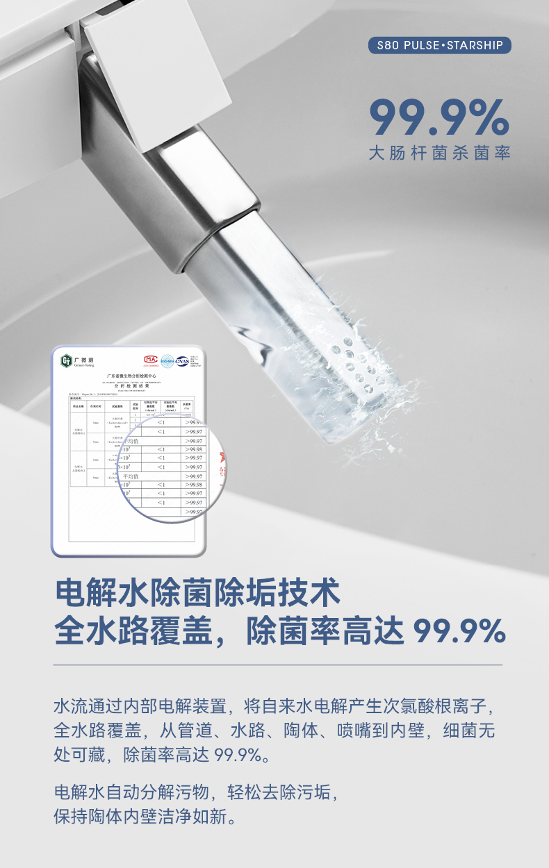 乐鱼体育下载app官网秉持“绿色健康”企业生产理念,于产品抗菌材料的研发和健康技术创新上已取得不错成果。智能产品中,应用电解水除菌除垢技术,通过电解水自动分解污物,除菌率高达99.9%,超纳米贵金属抗菌触媒,使抗菌率能达到99.9%,时刻保持马桶内壁的洁净如新。同时,银离子抗菌也是一项健康技术,有SIAA认证,能做到有效抑菌,减少细菌的滋生。五金产品选取低铅铜的健康材质,含铅量远低于国标规定,有效保证日常用水的干净。乐鱼体育在产品生产过程中也严格遵循环保标准,建有专业的产品检测中心,让每一款产品出厂前都经过严格的检测工序,做到将优质健康的产品交付给消费者。