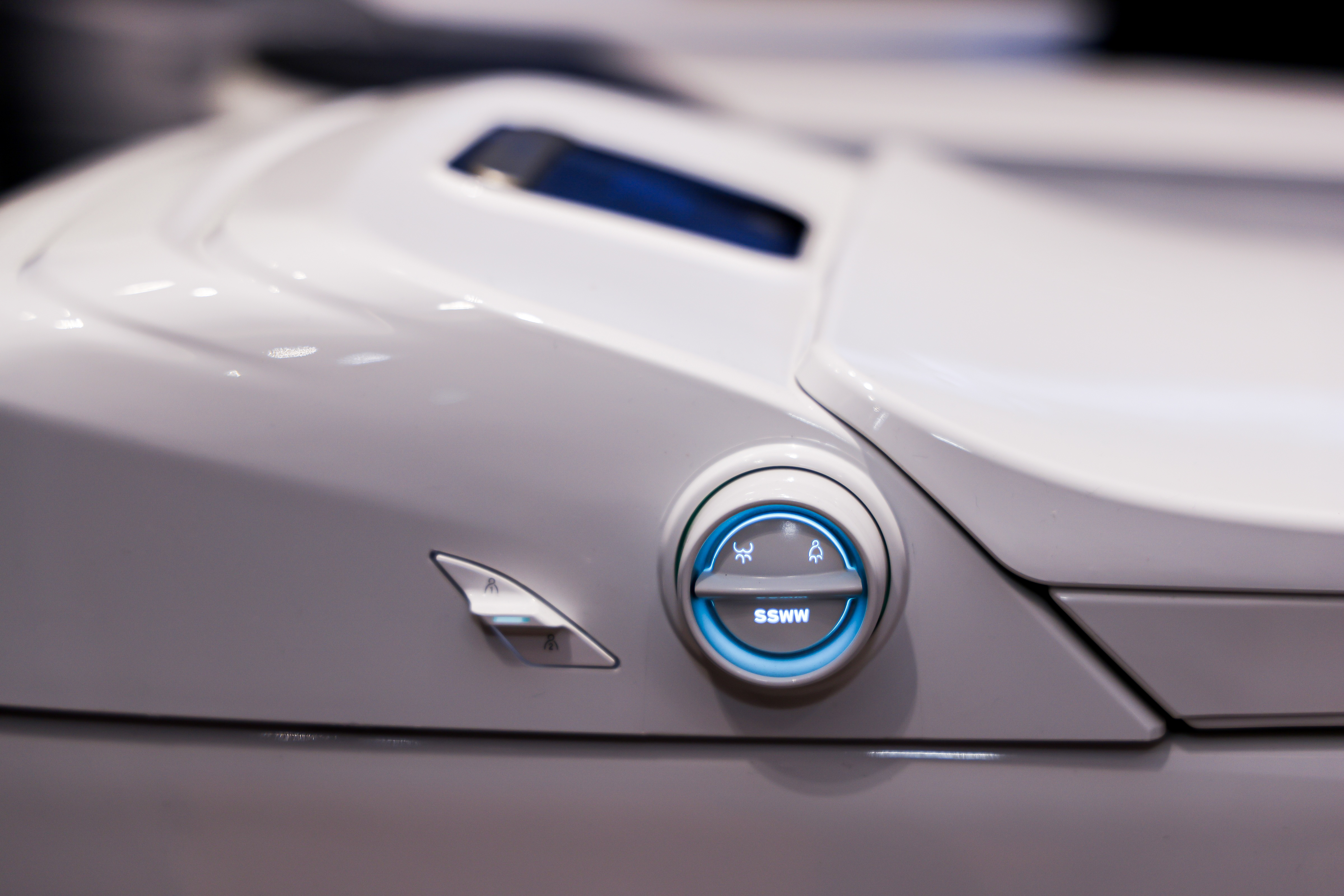 S80智能马桶,汲取星际战舰为设计灵感,利落的星舰旋钮,搭配常亮巡航灯,如夜间航行战舰,现实与科幻碰撞,为消费者打造独一无二的酷炫卫浴空间。