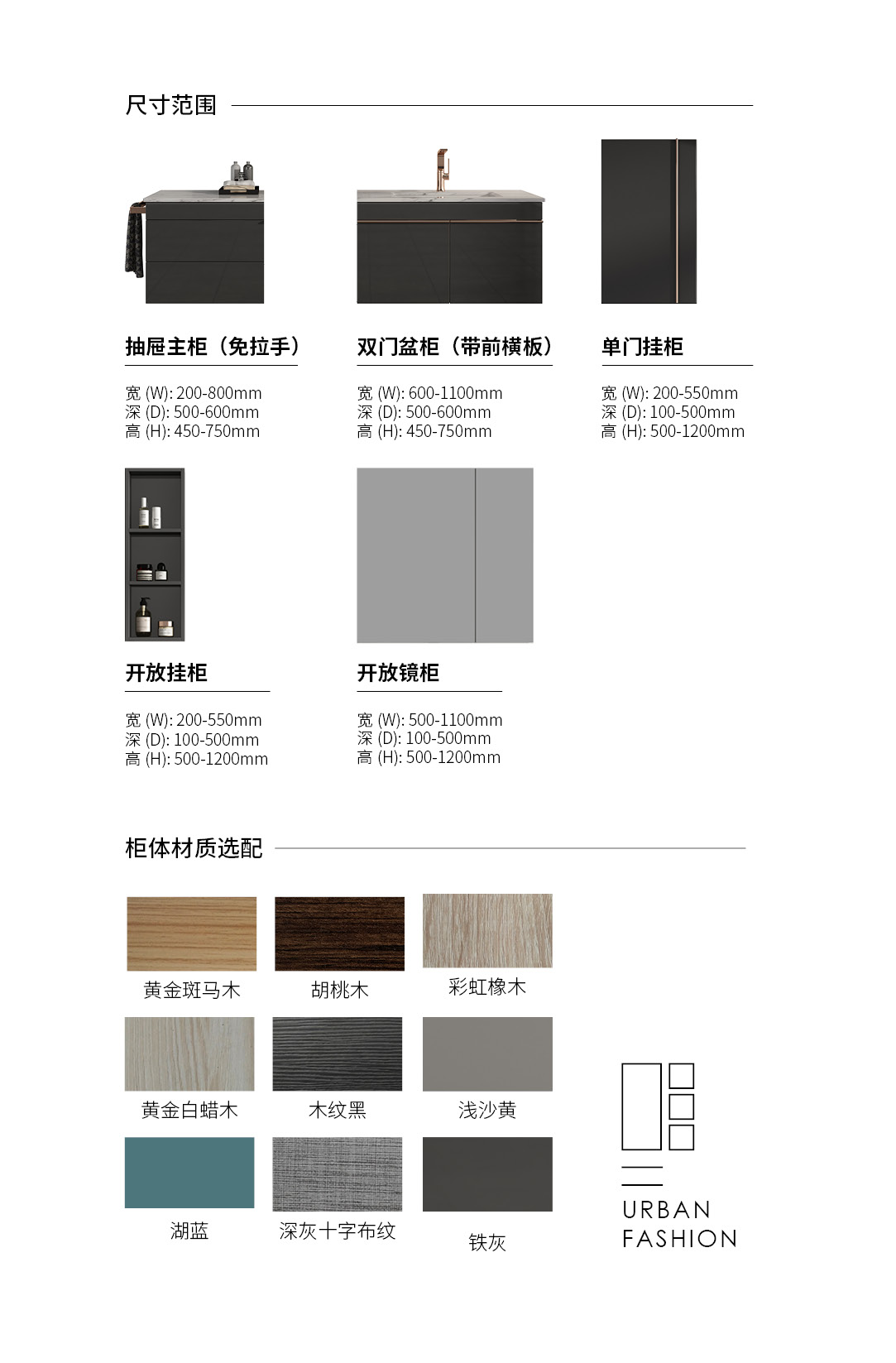 挂柜:含柜体、门板(镜门板)、SSWW 铰链、拉手;