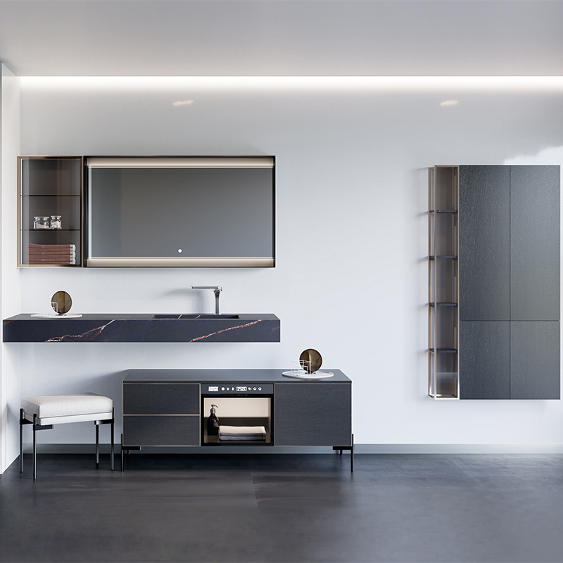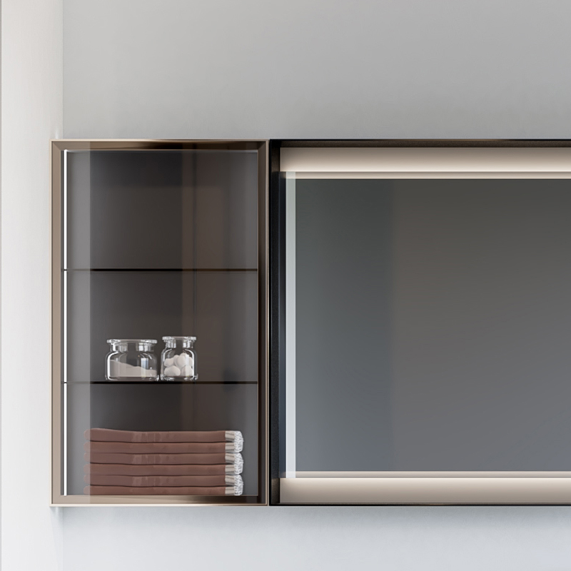 挂柜 :D1063 单门挂柜 ( 玻璃层板带 灯 )、D1019开放镜柜 ( 带灯 )