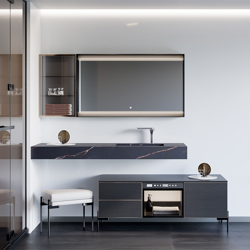 面板材质 : 主柜免漆面板、挂柜铝合金 玻璃门板